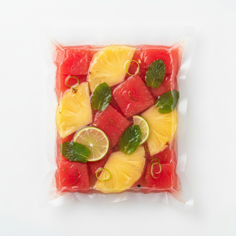 – Φύλλο πολλαπλών στρώσεων από πολυαμίδιο (PA) και πολυαιθυλένιο (PE), κατάλληλο για τρόφιμα, με πιστοποίηση LFGB και FDA και αντοχή στα κοψίματα.